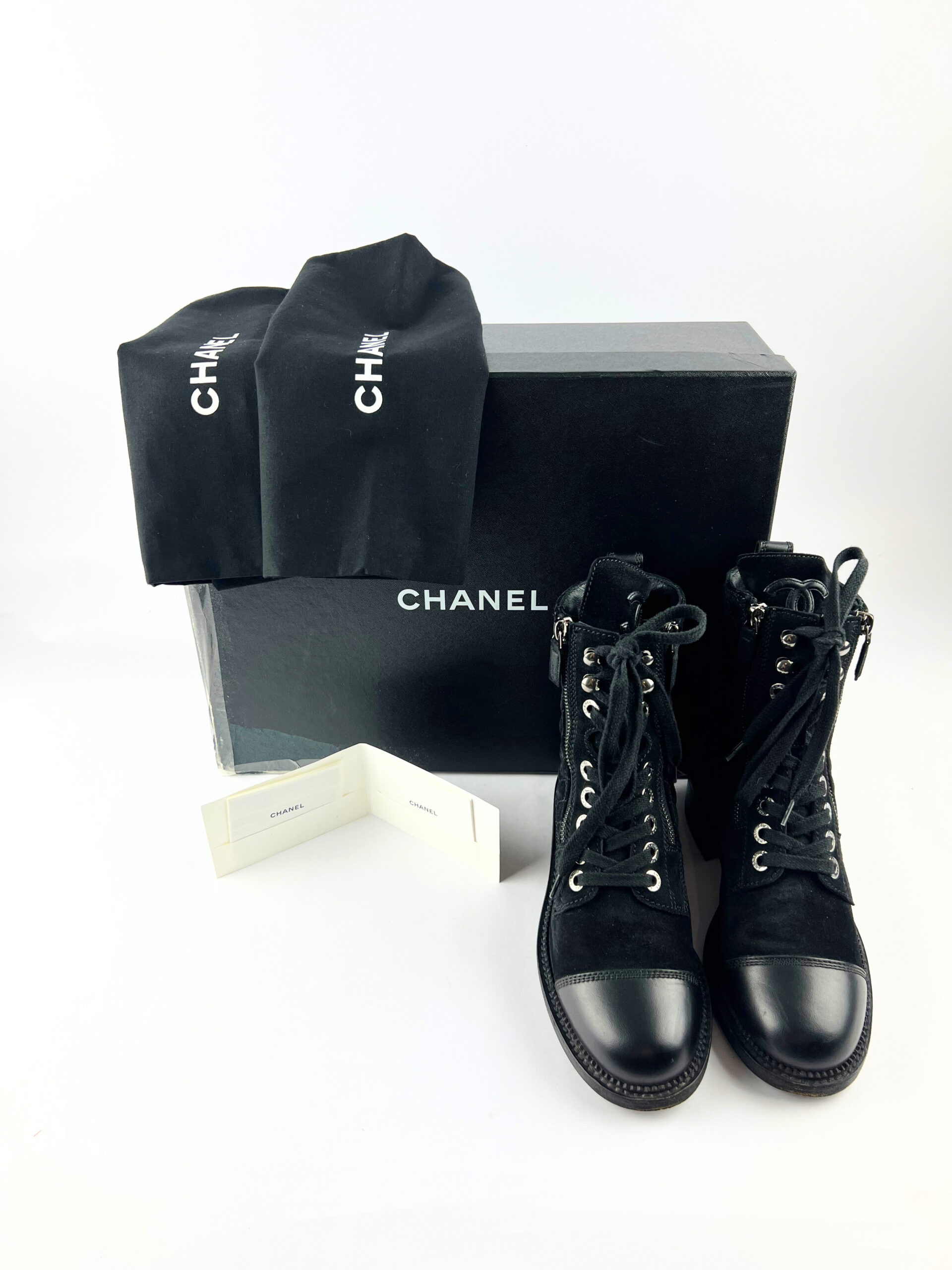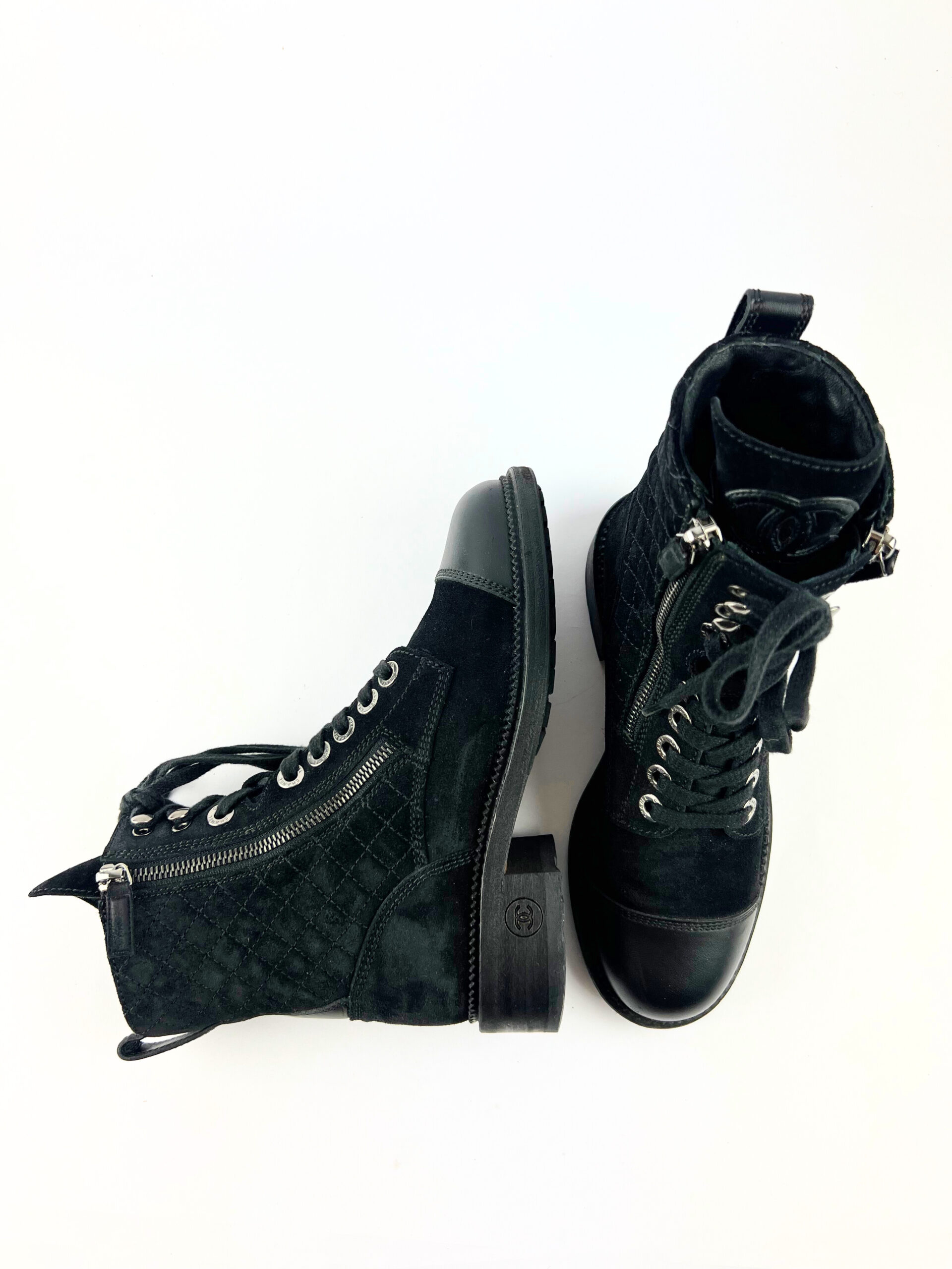 Chanel black suede quilted ankle boots EU size 36