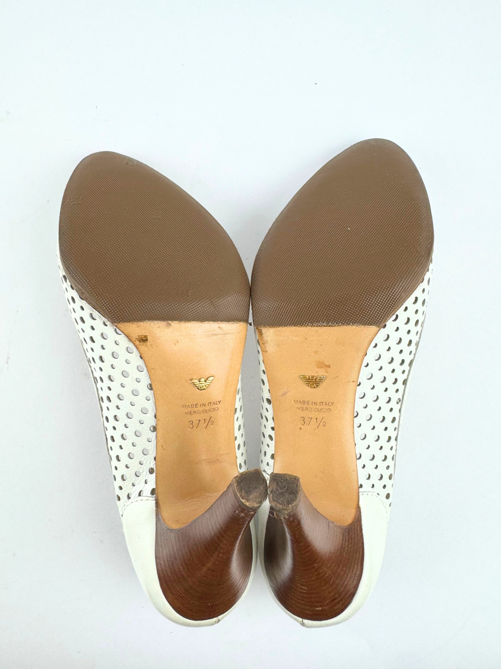 Emporio Armani white perforated leather heels EU size 37,5