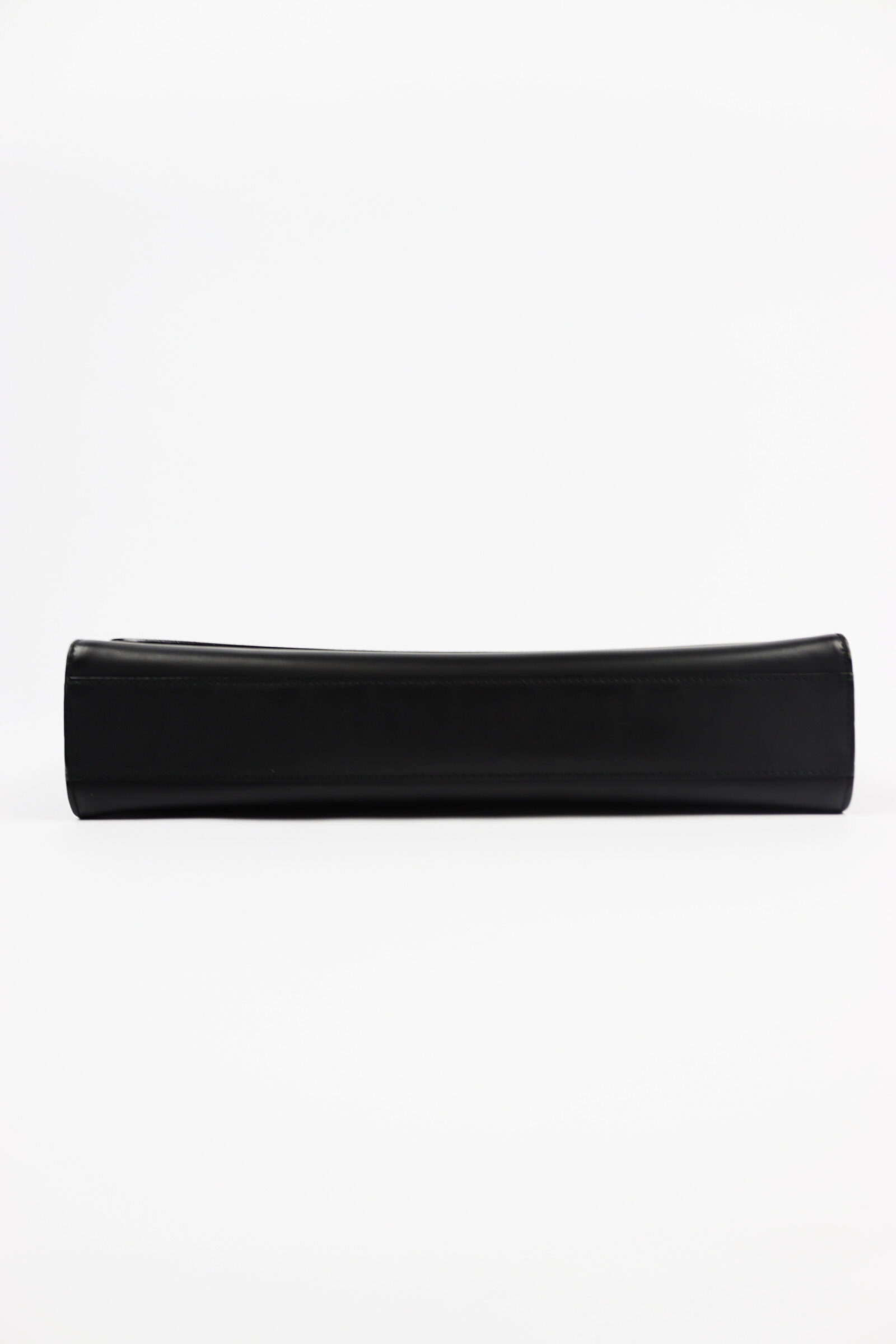 Black leather shoulder bag with oversized G-shaped hook logo. The divided interior actually keeps things organized instead of everything falling to the bottom. Holds more than the shape makes you think. For people who want their bag to do the talking.