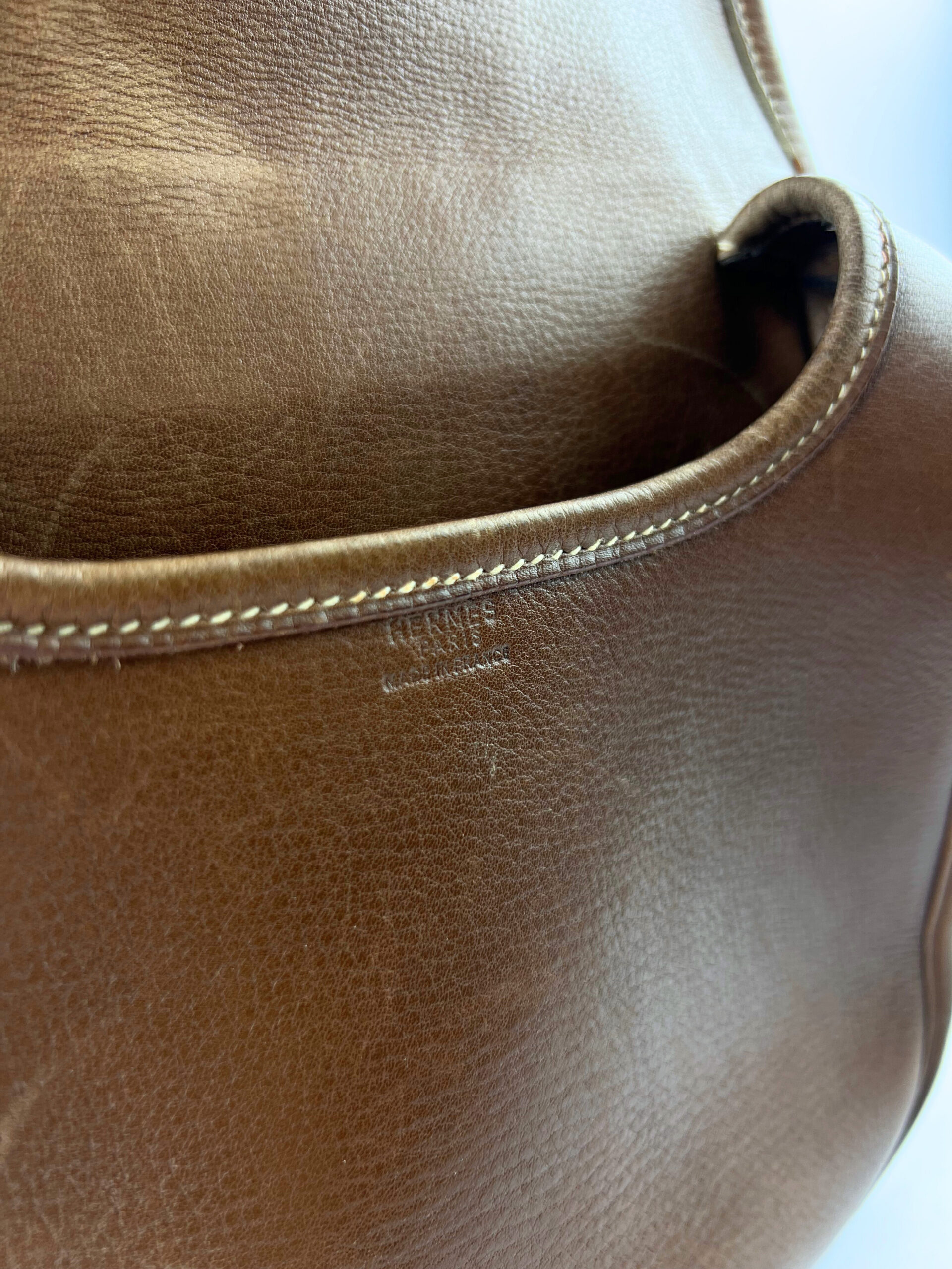 This vintage Hermès sac Cartouchière is crafted in smooth brown leather with a classic flap and buckle closure. Originally designed as a cartridge bag for hunting, it combines timeless functionality with understated elegance. The bag features a structured silhouette, brass hardware, and a comfortable shoulder strap. A versatile piece that reflects Hermès’ heritage in saddlery, making it both practical and collectible.